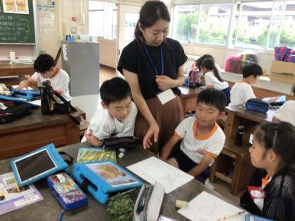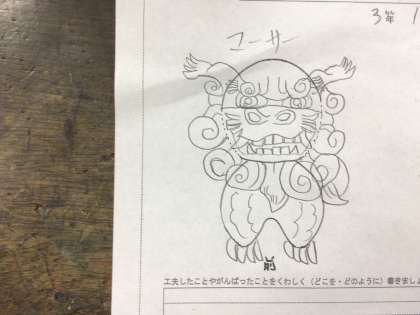6/26の図工の授業では、児童が「沖縄のシーサー」とは、何のためにあるのかを学びました。そして、児童は学習用タブレットでシーサーの画像を調べながら、自分のつくりたいシーサーのデザインを決めました。