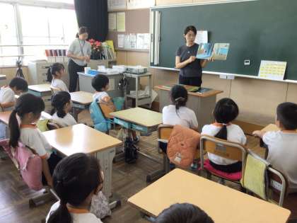 低学年児童は、食い入るように、絵本を見つめます。