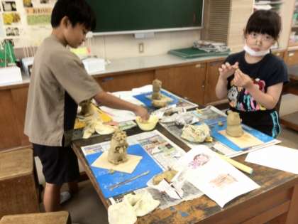 児童は、目や口や歯や舌を工夫して、ユーモラスなシーサーを作りました。