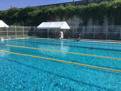 暑い中、児童の水泳授業を行っています。