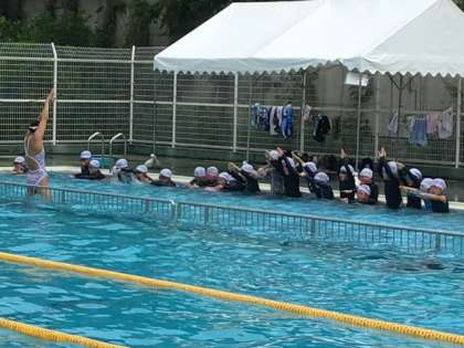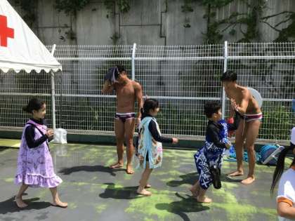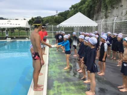 ていねいに教えていただいたおかげで、水を怖がらなくなり、ずいぶんと泳ぎがうまくなりました。最後は中京大学水泳部のみなさんとハイタッチをしてお別れしました。