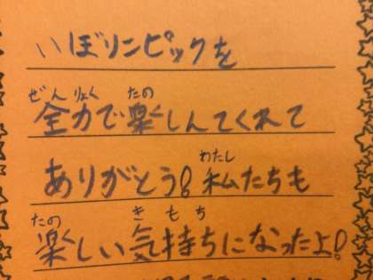 各学年の掲示板には、他学年から届いたきらり☆ともだちカードがたくさん貼られています。先週行われたいぼリンピックの活躍を認めることばが、あふれています。