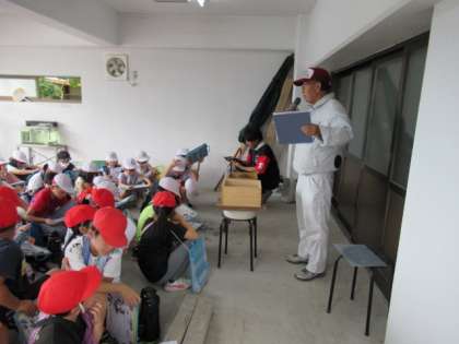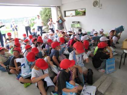 里山探検では、まず保全会の方のお宅を訪問し、保見の里にくらすゲンジ蛍の幼虫について教えていただきました。