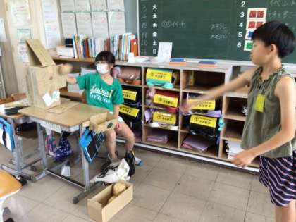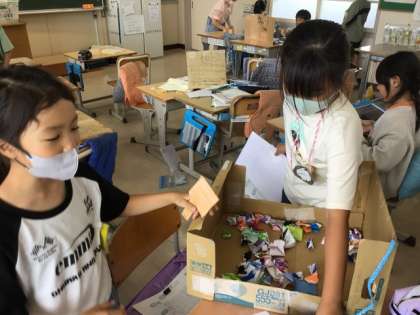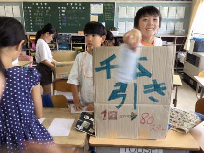 児童は学級活動の時間を使って、ゲームの準備をしてきました。児童はお客さんを呼び込んだり、ゲームの説明をしたり、クラス内通貨をやりとりしたりして、運営をしていました。