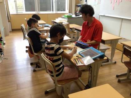 9/2の学習では、書く内容について決めて書き始め、9/3の学習では、前日書いた文章を読み直して、さらに詳しく書き足していました。「ここをもっと詳しく書くと相手に伝わるよ」という担任の先生のアドバイスを受けて、考えながら書いていました。