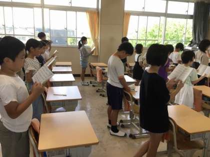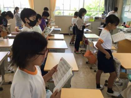 伊保小学校では月ごとに「9月の歌」のように歌が決められており、全クラスの朝の会で歌を練習しています。