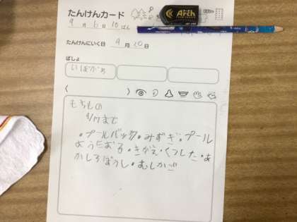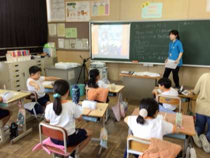 9/6の授業では、伊保川探検について、担任が児童に説明をしました。昨年度の写真を見ながら説明を聞いていると、児童はとてもわくわくしているようでした。児童は持ち物など大切なことを、ワークシートに書いていました。