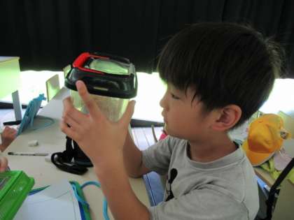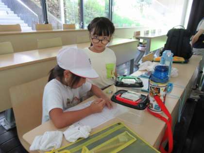 1年生は室内に戻って、、捕まえた昆虫をスケッチしました。