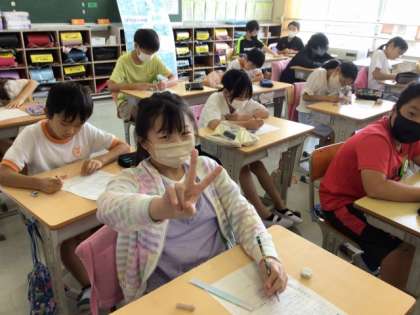 5年生の総合的な学習の時間では、「福祉」について6月から学習しています。これまで、地域のユニバーサルデザインに配慮されたものを調べたり、車いす体験や高齢者疑似体験を行ってきました。