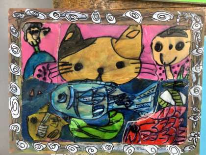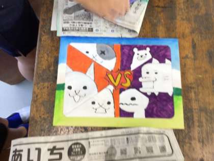 9/18の授業で、大半の児童の作品が完成しました。児童は作品の題名を考えたり、友達のパズルを楽しんだりしていました。