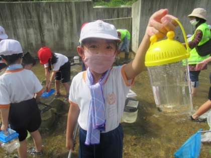 児童は、捕れた魚をうれしそうに見せてくれました。