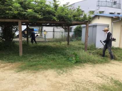 草刈り機を持ってきてくださった方は、運動場の隅の伸びた草を刈ってくださいました。