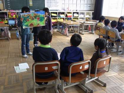 2月3日に,新入学児の保護者を対象として,入学説明会を行いました。保護者の皆さんが入学に関する説明を受けている間,新入学児は1年生といっしょに過ごしました。1年生は,新入学児に「小学校での過ごし方」について説明しようと,これまで班ごとに準備してきた内容を発表しました。