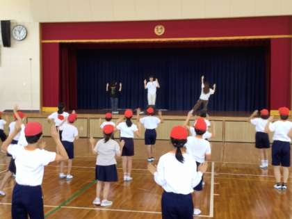 ここまでの練習の成果を見ていただくと、講師のみなさんが5・6年生の踊りをほめてくださいました。