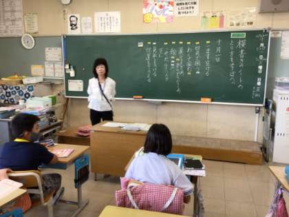 10/1の4年生の書写では、横書きノートの取り方を学習しました。