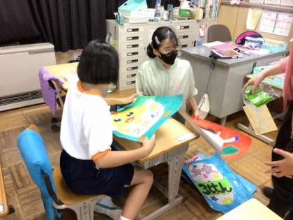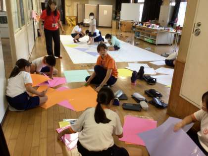 10/19の伊保っ子体育フェスタに向けて、5・6年生児童は7つの実行委員会に分かれて準備を進めました。運動場に目印のペグを打ったり、得点板を作ったり、応援グッズを作ったりしました。
