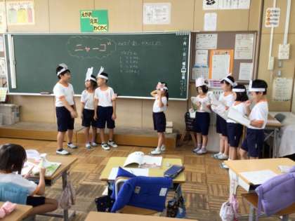 2年生の国語では、「ニャーゴ」を学習しています。これまで児童は、主人公ニャーゴの気持ちの変化を読み取り、「ニャーゴ」という鳴き方のちがいを各班で練習してきました。