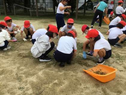 10/19の伊保っ子体育フェスタに向けて、伊保小学校児童福祉・美化委員主催の「草取り大作戦」が行われました。