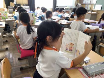 10/7の学習では、会話文に気を付けながら、クラスのみんなで声をそろえて音読練習をしていました。