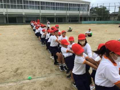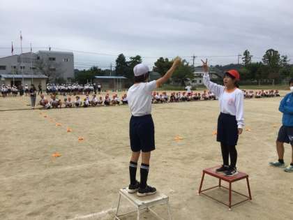 伊保っ子体育フェスタに向けて、10/15に縦割り種目の練習を全校児童で行いました。