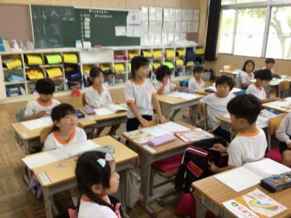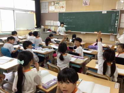 10/16の授業では、足し算になる文章題を読み、最初に何個あって、何個増えるのか、問題が設定しているお話の状況をつかみました。そして、式を考えました。