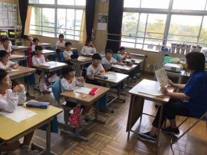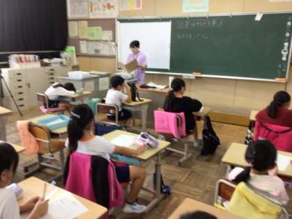 10/16の授業では、担任が絵本を読み、児童はメモを取りながら聞きました。お話から思い浮かんだ情景を、これから絵にしていきます。