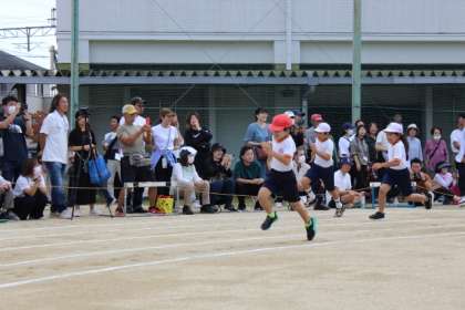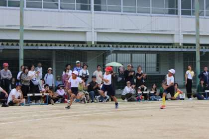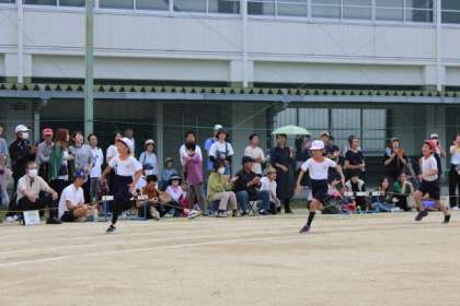 プログラム2は、中学年徒競走でした。中学年はトラックのセパレートコースを使っての80m走でした。