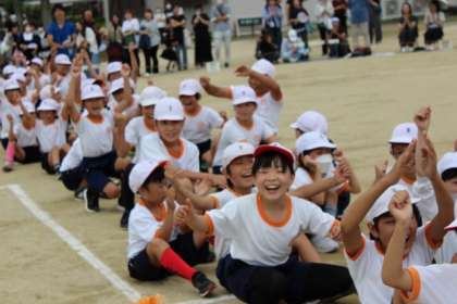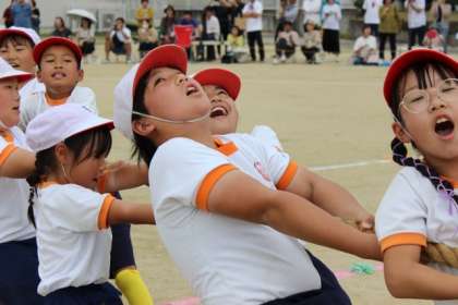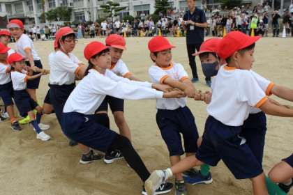 綱引きは2回戦行いました。児童は声を合わせて、綱を引きあいました。