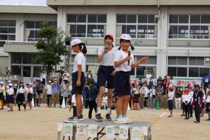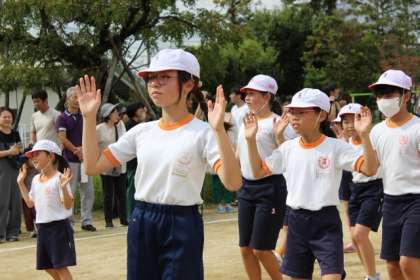 プログラム6は、おいでん踊りでした。これまで児童は、豊田大谷高校ダンス部OGのみなさんに踊りを教わり、各フレンド班での練習を重ねてきました。