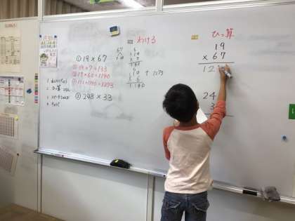 19×67の筆算では、67を7と60に分け、19×7と19×60を別々に計算して、後で足してみました。筆算では、それを同時に行うことができるのだと気づきました。