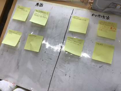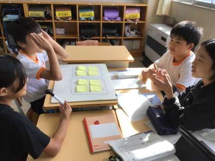 10/25の学習では、各班で話し合うテーマを決めて話し合いました。各班では、話し合うテーマについて、クラスでうまくいかない実態と原因を挙げ、解決策を話し合いました。話し合いで出た意見は、各班のホワイトボードにまとめていました。