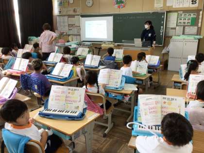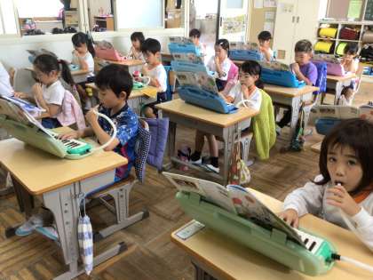 1年生の音楽では、鍵盤ハーモニカを使っての演奏を楽しんでいます。