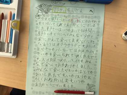 やさい名人さんに、おれいの手紙を書いたよ(2年生)