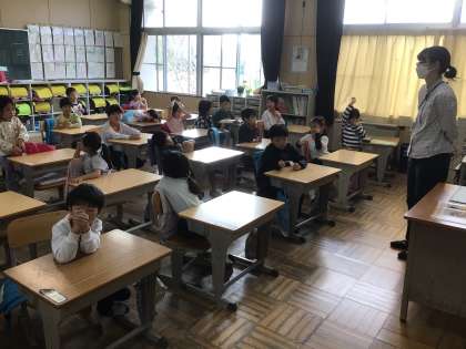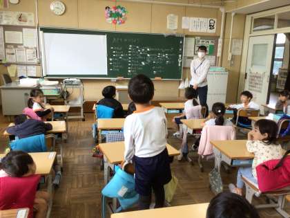 10/30の学習では、児童が「秋」と聞いて思い浮かぶものを発表しました。「もみじ、落ち葉、どんぐり、赤、黄色」「栗ご飯、きのこ、焼きイモ、おにまんじゅう、マツタケごはん」「ハロウィン、温泉、旅行」など、秋らしい言葉が、どんどん出てきました。