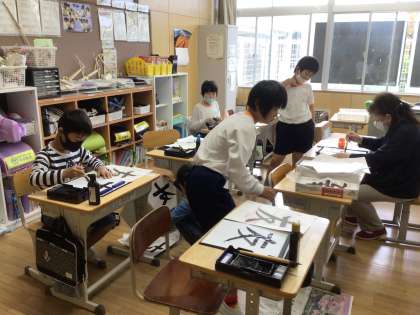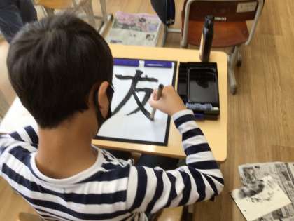 特別支援学級4・5年生は、10/30に書写を行いました。担任の先生に、左はらいや右はらいの書き方を教わり、ゆっくり力を抜きながら筆を運びました。大切な友達のことを考えながら、丁寧に書きました。
