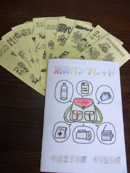 4年生は,総合的な学習の時間に,1年間を通して防災の学習を進めてきました。そして,1年間の学習の成果を「防災パンフレット」としてまとめて各学級に配布しました。
