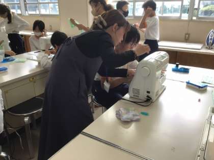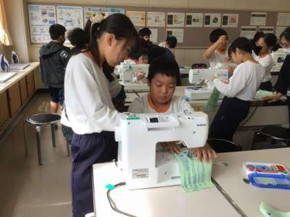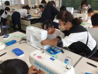 11/5の授業では、ミシンの使い方の基礎を学習しました。地域・保護者のミシンボランティアさんが各テーブルごとにつき、慣れない手つきの児童をサポートしてくださいました。ボランティアのみなさん、ありがとうございます。