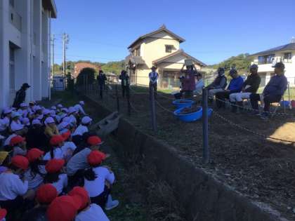 サツマイモ掘りが終わったら、野菜名人さんに感謝状やお手紙を渡しました。
