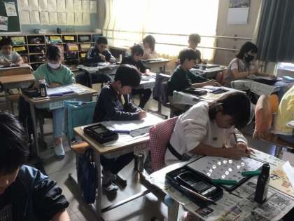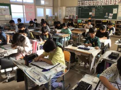 11/19の4年生の国語(書写)では、小筆で自分の名前を書く練習をしました。