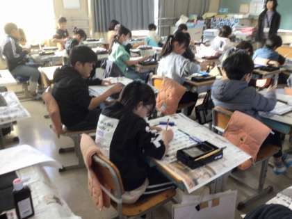 教科担任が用意したお手本を見ながら、1枚の半紙に何回も練習していました。