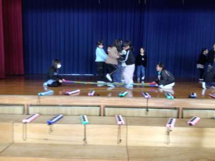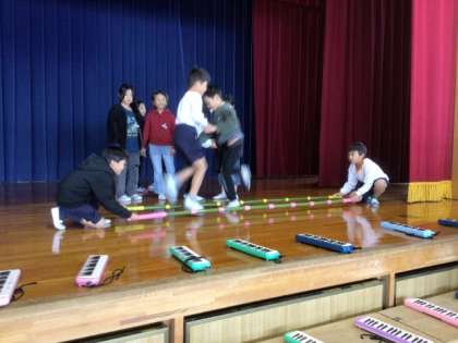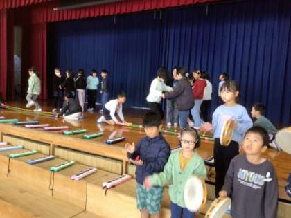 11/19に2年生は体育館で、学年発表会の練習を行いました。2年生は創作したお話に沿って、合奏とバンブーダンスを披露します。バンブーダンスはリズミカルで、すばらしい出来栄えでした。