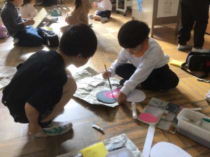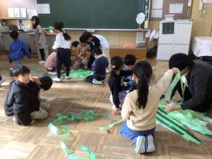 練習の後、劇で使う小道具も作りました。