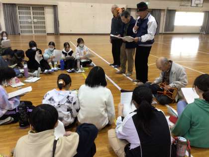 ここまで4回の伝統芸能の授業では、地域の保存会のみなさんから、大変多くのことを学びました。特に、途絶えそうな伝統芸能をなんとか復活させてきた地域のみなさんの思いを聞き、「いつか、自分ももう一度やってみたい」と、感想を書く児童もいました。地域の大切な思いを教えてくださった芸能保存会のみなさん、ありがとうございました。