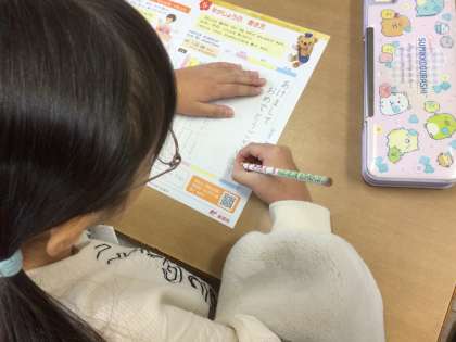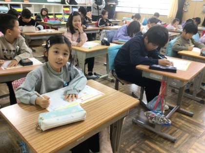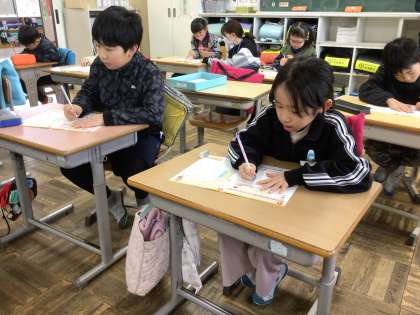 12/11の授業では、年賀状の書き方を学びました。児童は、相手の住所や相手の名前を書く場所や自分の住所や名前の書く場所を学びました。そのあと、相手を思い浮かべて、新年のあいさつ文を考えました。