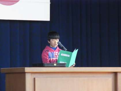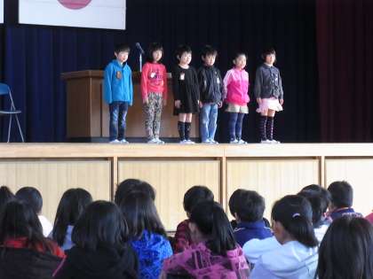 みんな,1年の終わりにふさわしい態度で参加できました。代表の児童は,大きな声で堂々と,今年がんばったことや来年の目標を発表できました。