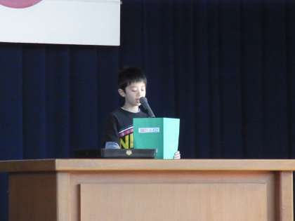 3 児童代表のスピーチ(写真は1年と3年の発表の様子)