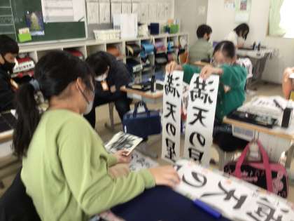 1/7に行う書き初め大会に向けて、地域の書道講師をお迎えして各クラスで児童は練習に励んでいます。