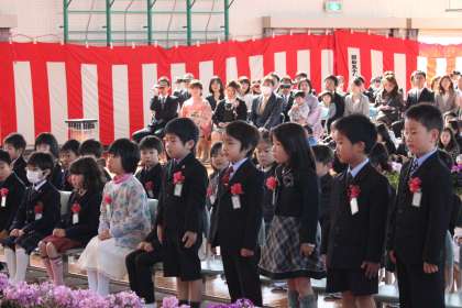 入学・進級おめでとう。37名の新入生を迎えて,平成26年度が始まりました。1年生にとっては新たに小学校での生活が始まります。2年生から6年生までは学年が上がり,一つお兄さんお姉さんになって学校生活が始まりました。入学式・始業式では,みなさんのきりりとひきしまった表情の中に,「今年は去年よりもがんばるぞ」という決意が表れていました。