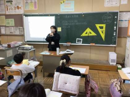 その後、児童は三角定規をもって、教室にある物の中で「直角探し」を行いました。