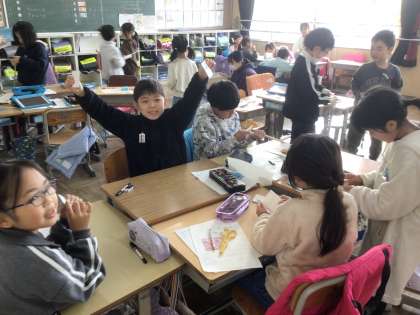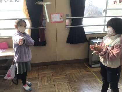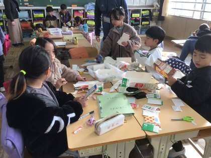 1/15の学習では、2年生児童が実際におもちゃを作って、その作り方を説明する準備をしていました。